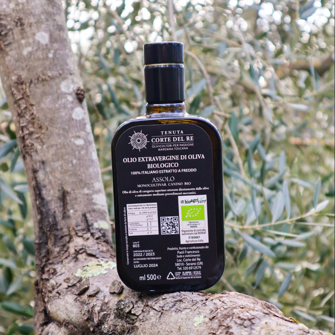 Huile d'olive vierge extra Bio Italienne mono variété Canino pressée à froid (BTLE 0,5 LT)